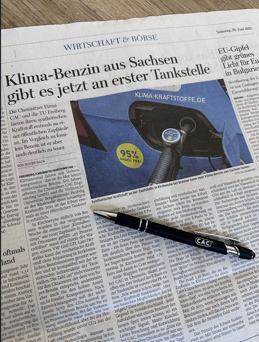 Near Bremen, Germany, the first “eBenzin” gas station opened this June. The e-gasoline (an e-fuel) that one can buy there is made from CO2 extracted from the atmosphere or industrial flue gases plus hydrogen made by splitting water with electricity (electrolysis). These are then — to put it simply — reacted via chemical catalytic processes to make the synthetic fuel. https://www.cac-chem.de/news-detail/europapremiere-an-der-zapfsaeule